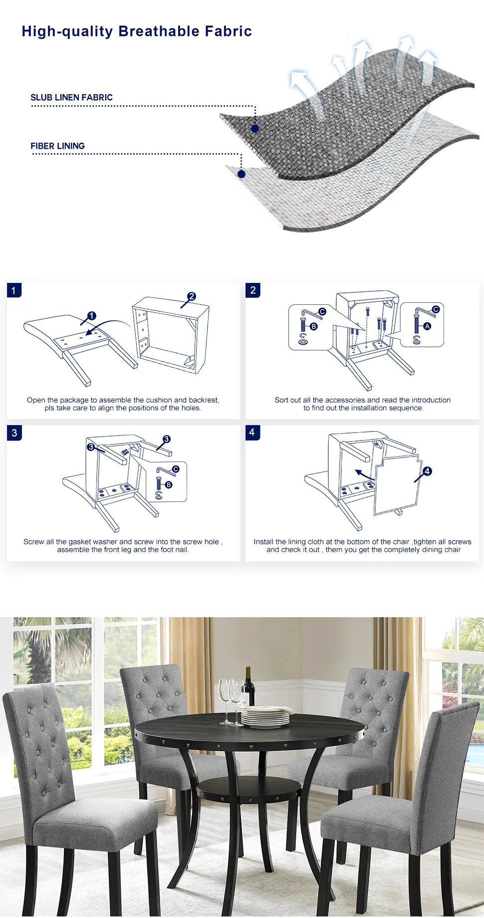 These were pretty easy to put together. I'm a heavy person and es concerned the chairs weren't going to be sturdy but they are comfortable and seem like they will last.