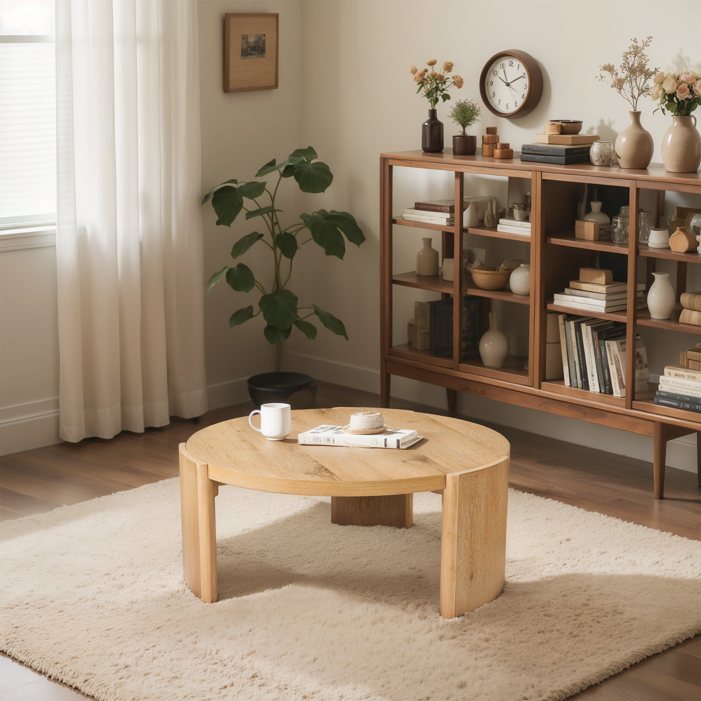 This Minimalist Wood - Grain Coffee Round Table combines sturdy functionality with stylish design. Featuring non - slip feet for strong, wobble - free support, it stays stable even with daily use—perfect for placing drinks, snacks, or decor. The premium wood finish, scratch and heat - resistant, adds a touch of natural elegance that blends seamlessly into minimalist, Scandinavian, or modern - rustic home styles. Its 40” spacious tabletop offers ample room for relaxation and entertainment, making it a practical yet chic centerpiece for any living space.